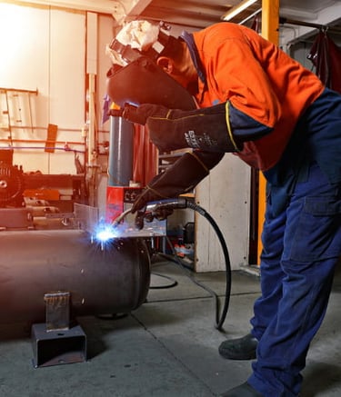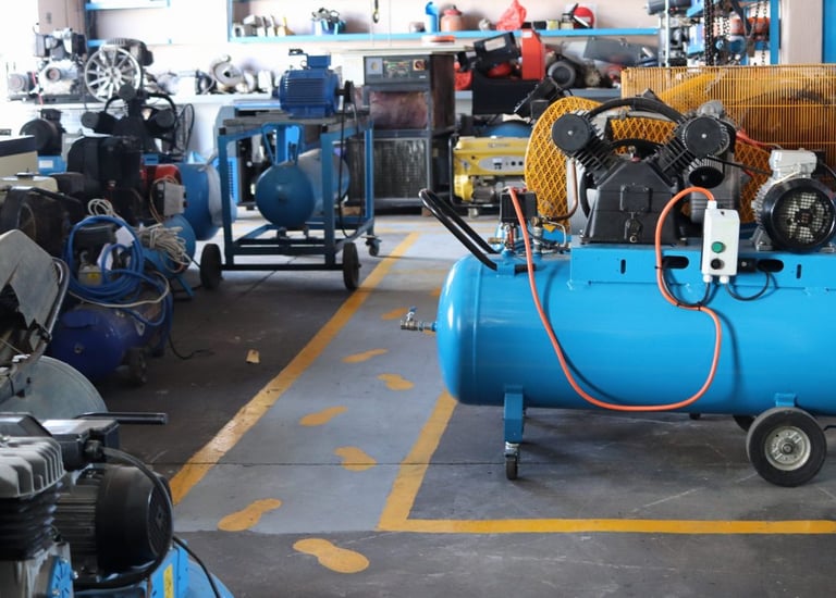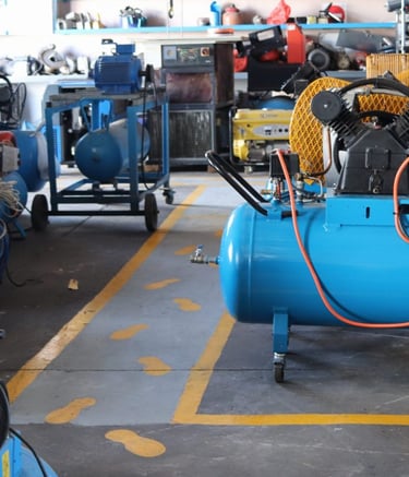 A reciprocating air compressor, also known as a piston compressor, is a positive-displacement machine that uses a crankshaft-driven piston and cylinder mechanism to compress air.